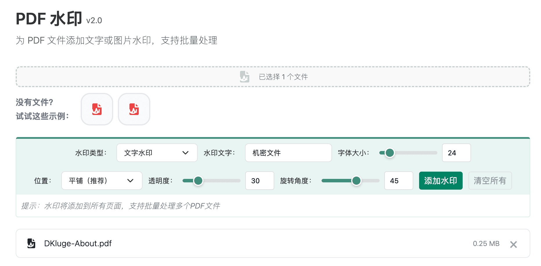 工具地址:https://www.dkluge.com/bag/pdf-watermark